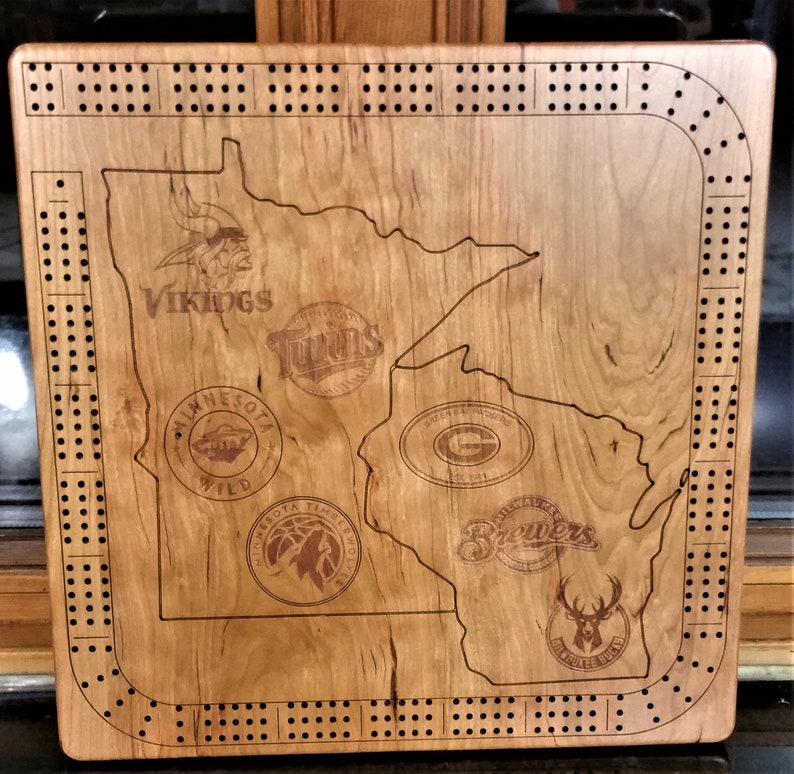 Custom Minnesota Wisconsin (MN WI) Sports Cribbage Board
