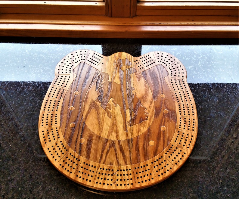 7. Peg storage with cover on back side. Includes four (4) sets of different colored scoring pegs.