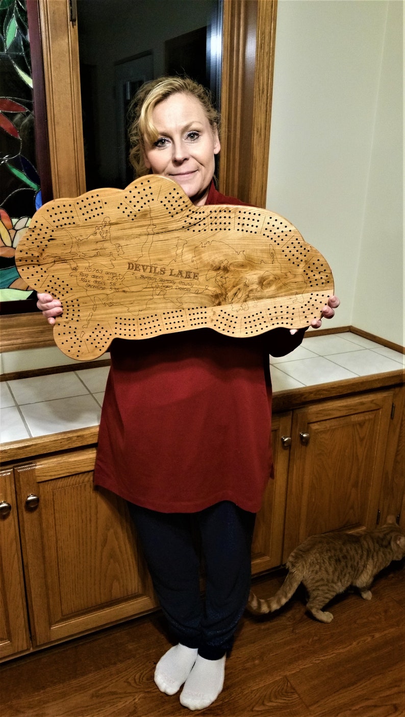 Other custom personalized lake-shaped cribbage boards available or can be designed and made upon request.