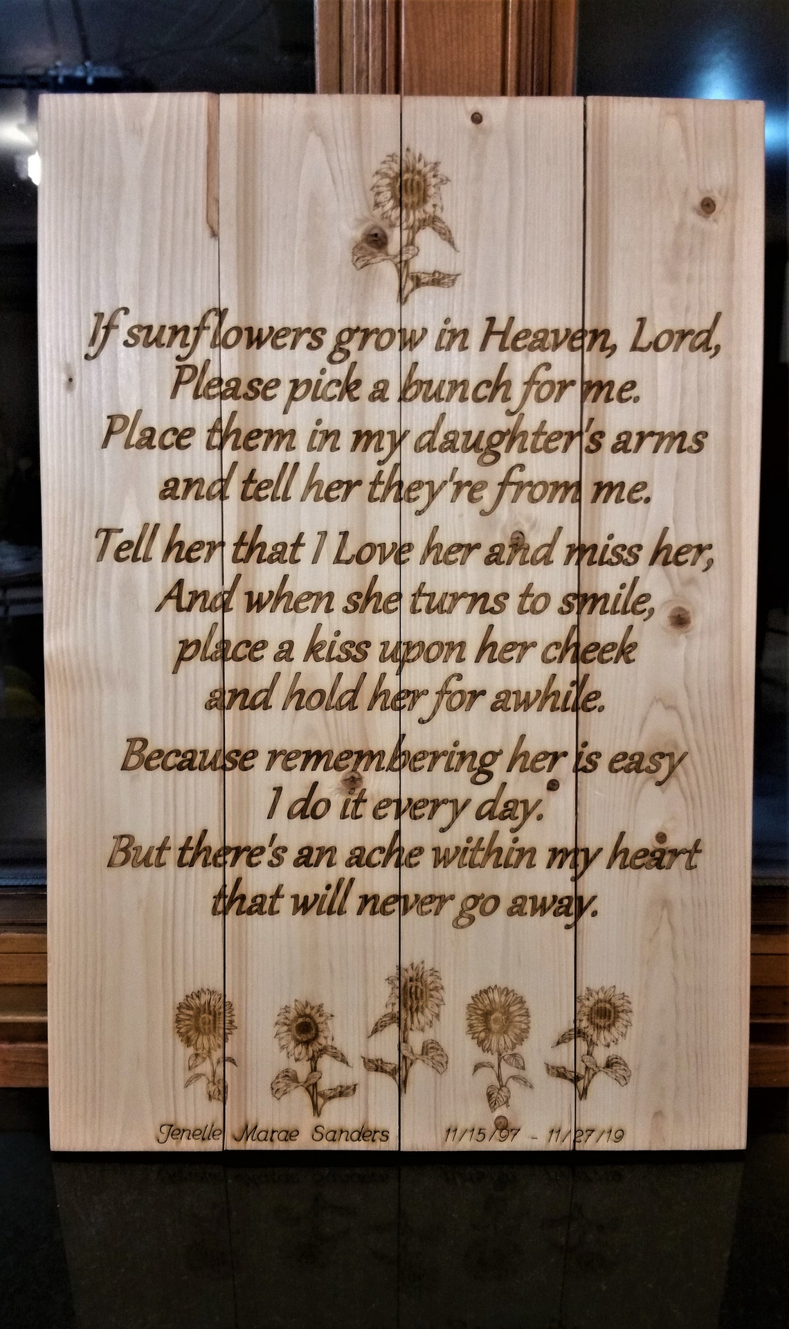 Sunflowers in Heaven pallet-type sign.